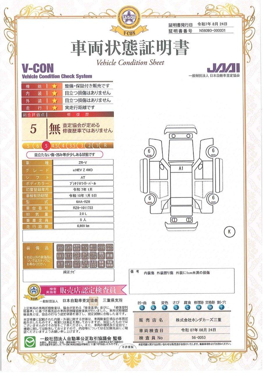 車両保証(ZR-V e:HEV Z:Honda Cars 三重 津中勢バイパス店)