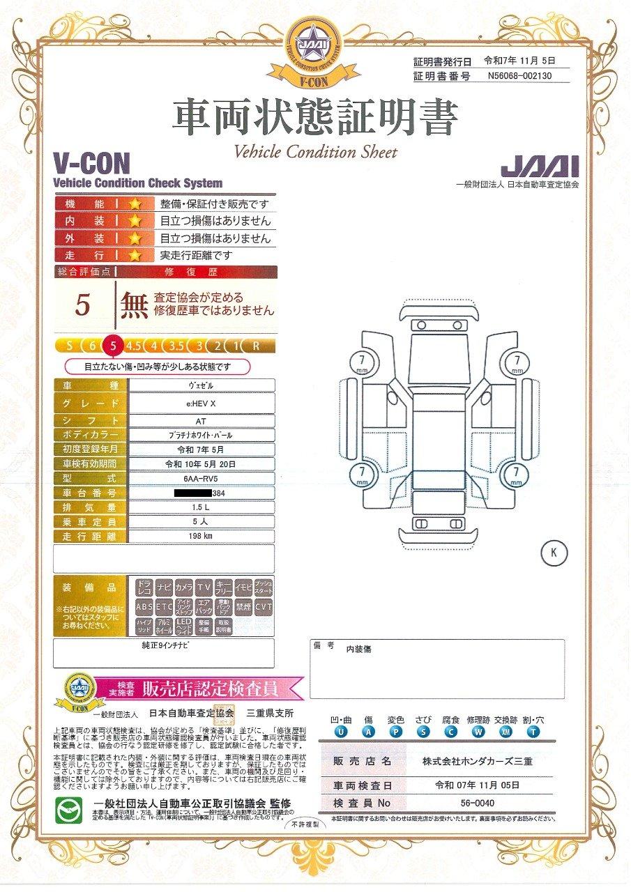 車両保証(ヴェゼル e:HEV X:Honda Cars 三重 U-Select 多気クリスタルタウン)