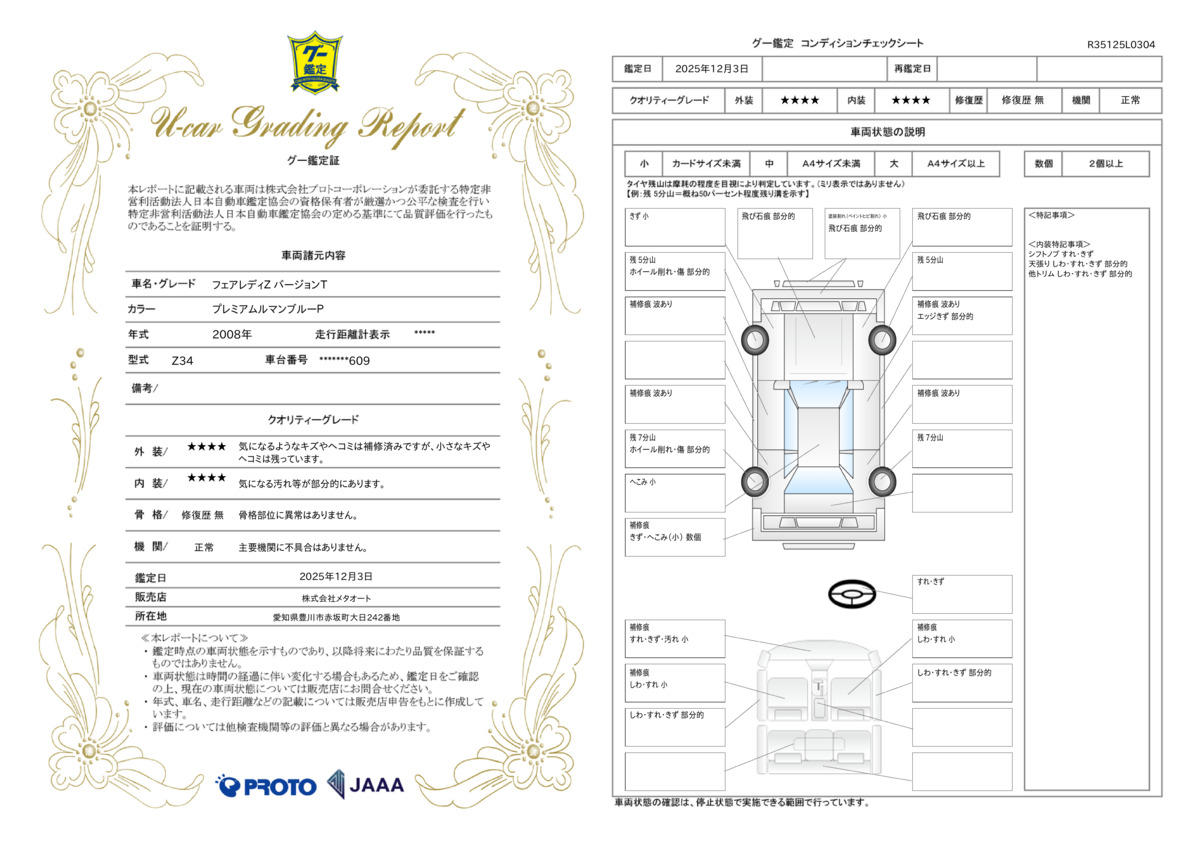 | 車両状態評価書 | ※クリックすると開きます![]() |