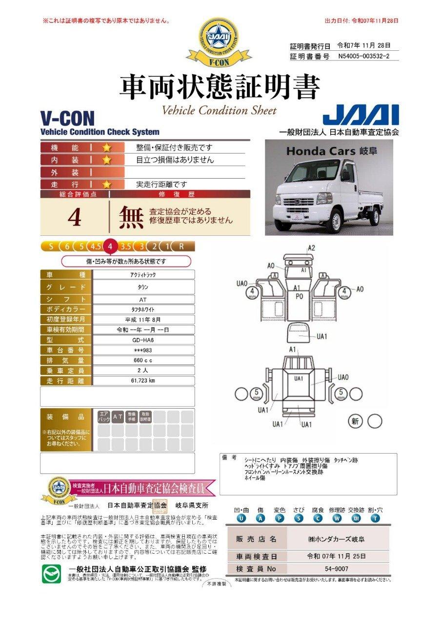 車両状態(アクティトラック タウン)