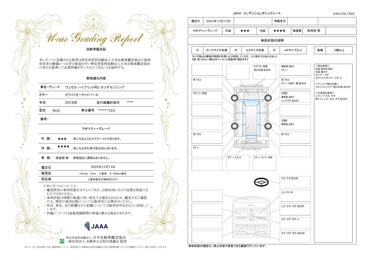| 車両状態評価書 | ※クリックすると開きます![]() |