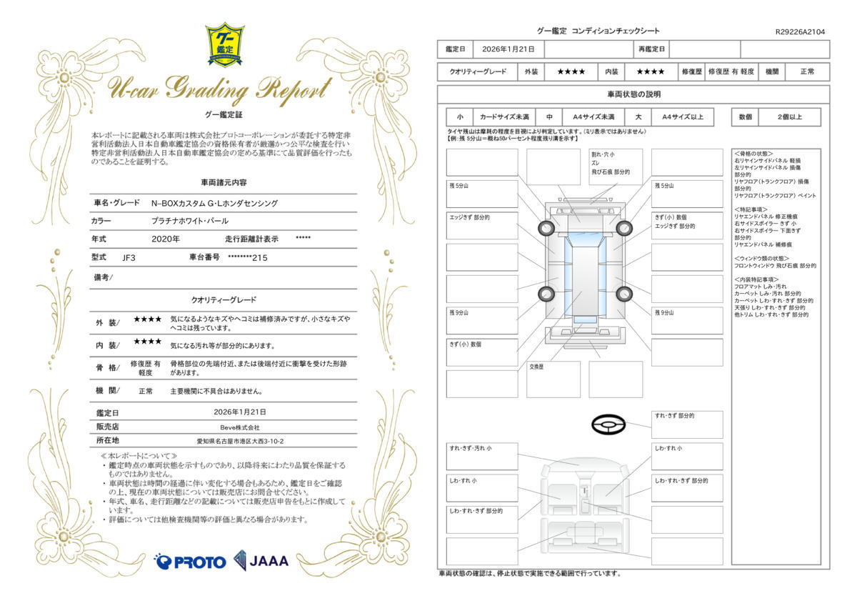| 車両状態評価書 | ※クリックすると開きます![]() |