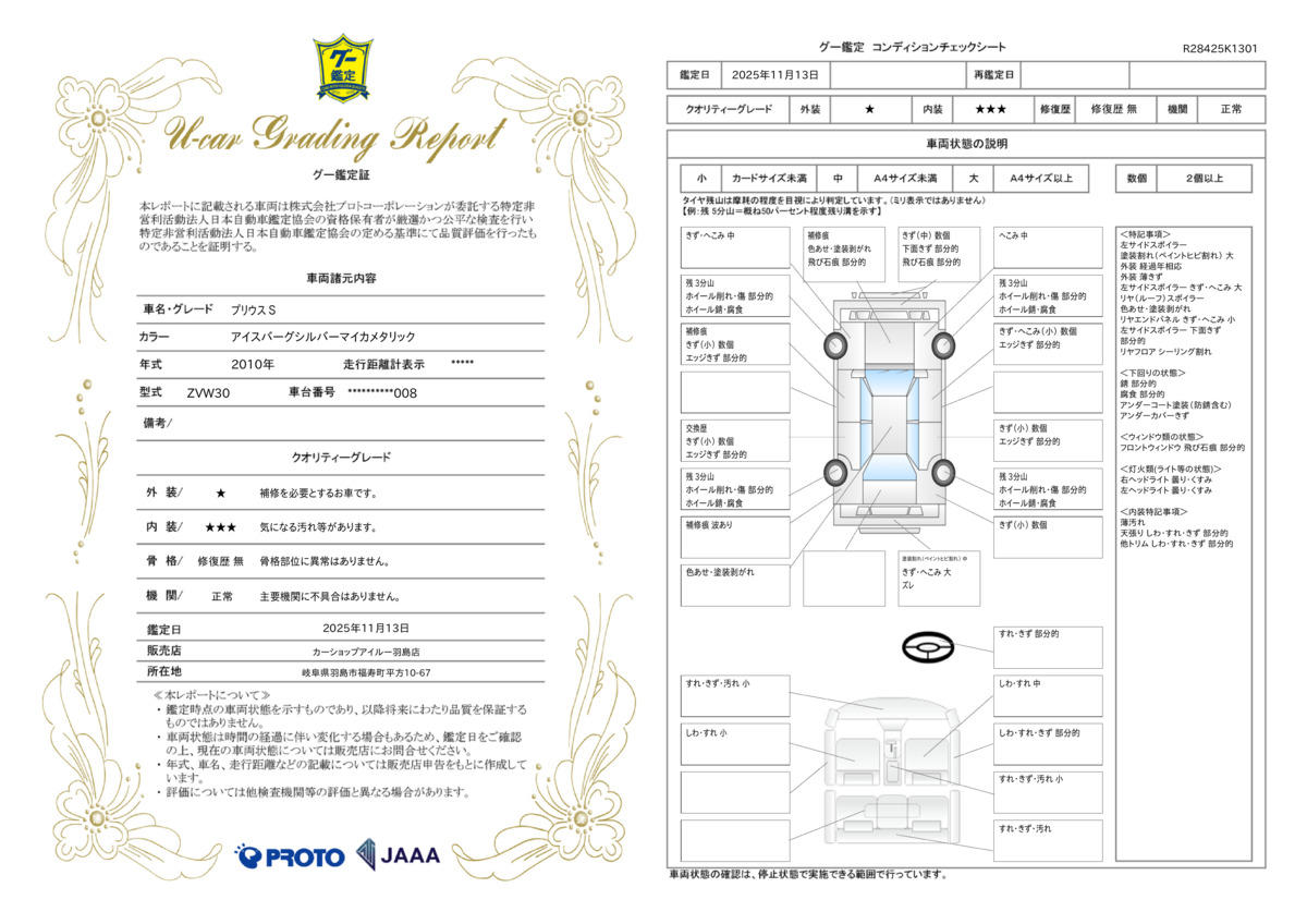 | 車両状態評価書 | ※クリックすると開きます![]() |