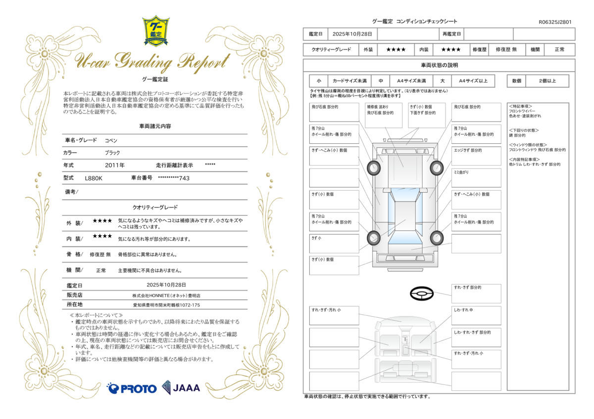 | 車両状態評価書 | ※クリックすると開きます![]() |
