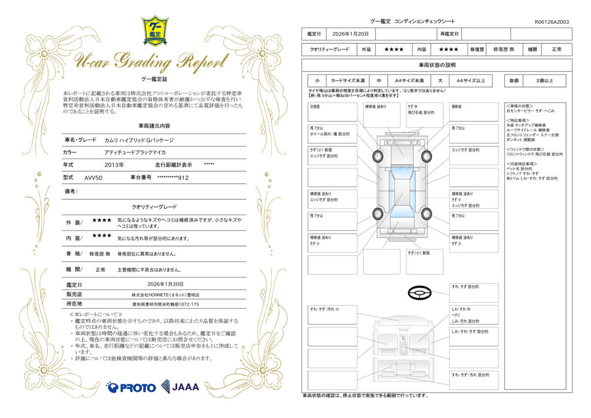 車両保証(カムリ ハイブリッド Gパッケージ:(株)HONNETE(オネット)豊明店)