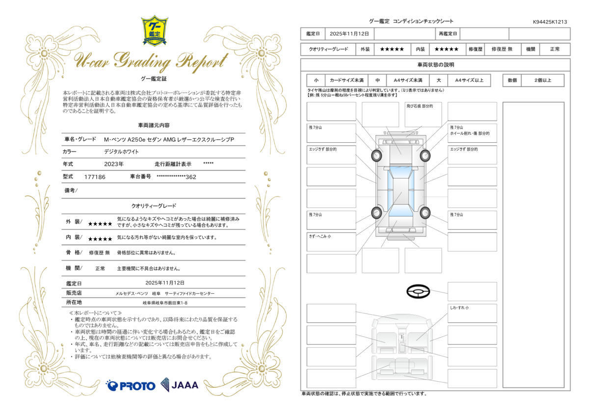 | 車両状態評価書 | ※クリックすると開きます![]() |