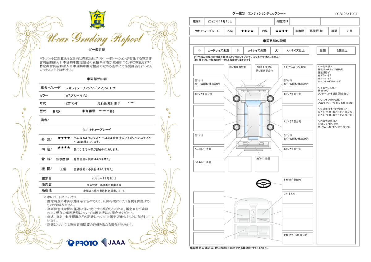 | 車両状態評価書 | ※クリックすると開きます![]() |