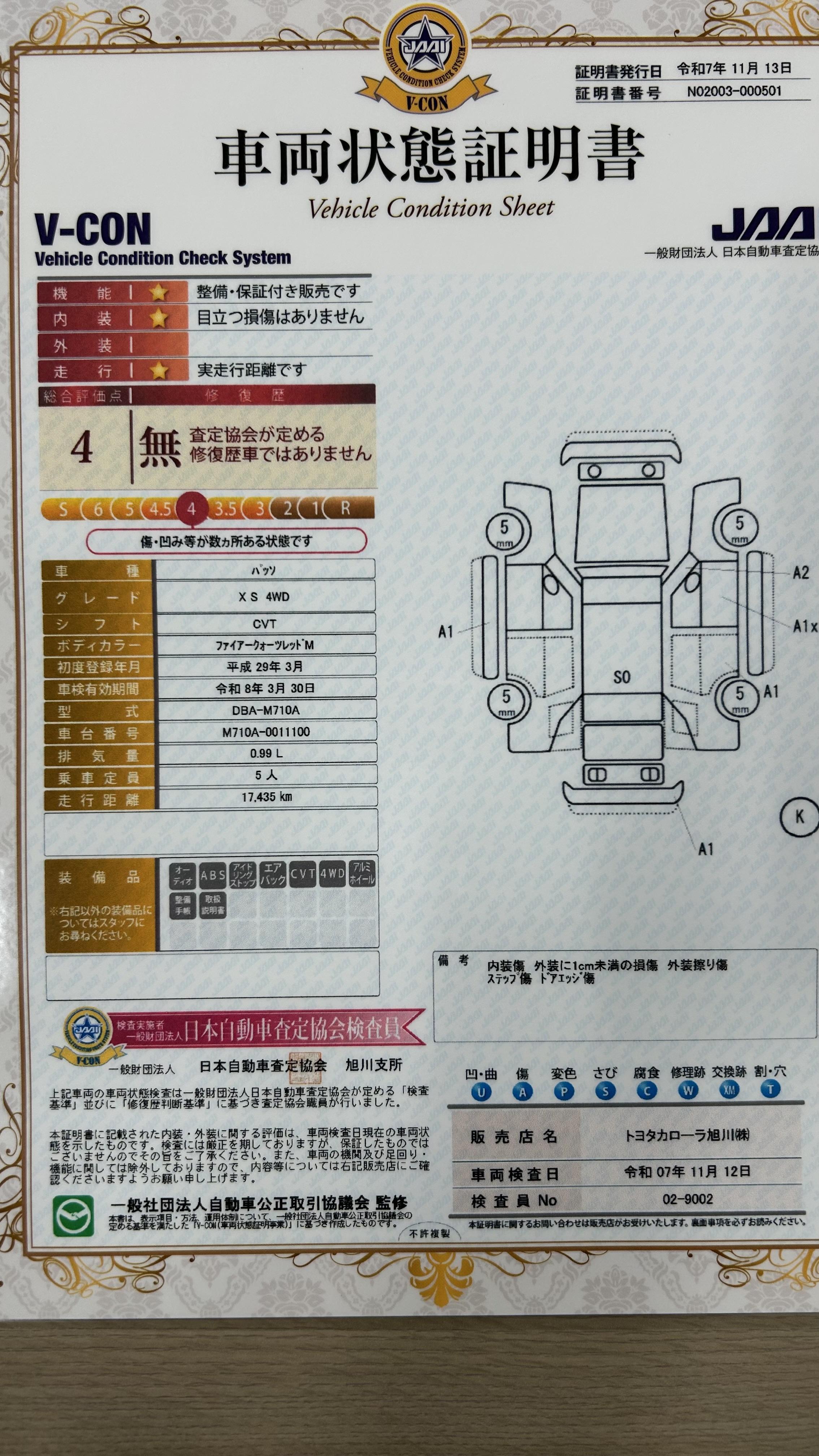 車両保証(パッソ X S:トヨタカローラ旭川(株) 旭川店)