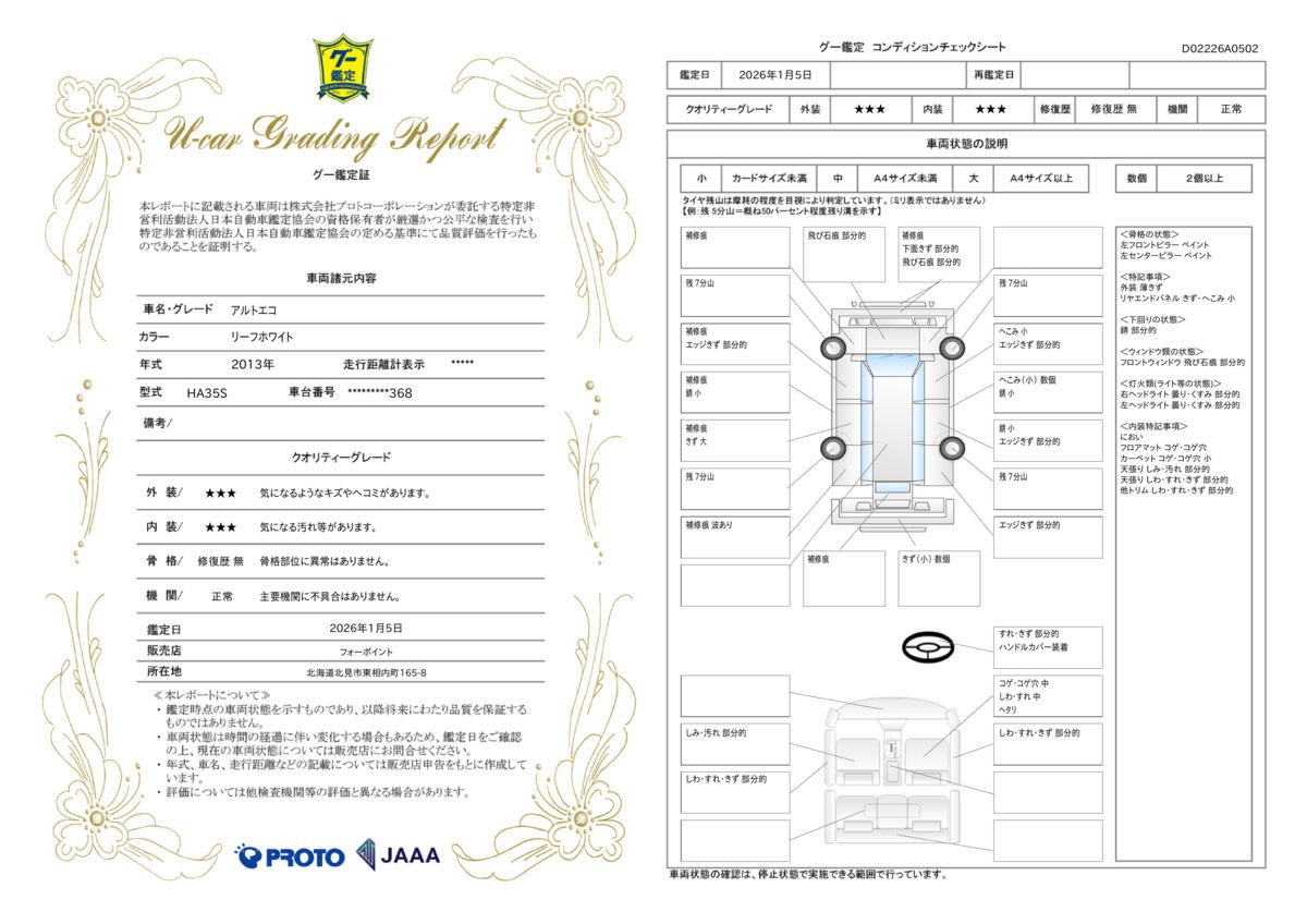 | 車両状態評価書 | ※クリックすると開きます![]() |