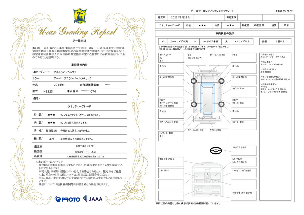 車両状態評価書 | ※クリックすると開きます![]() |