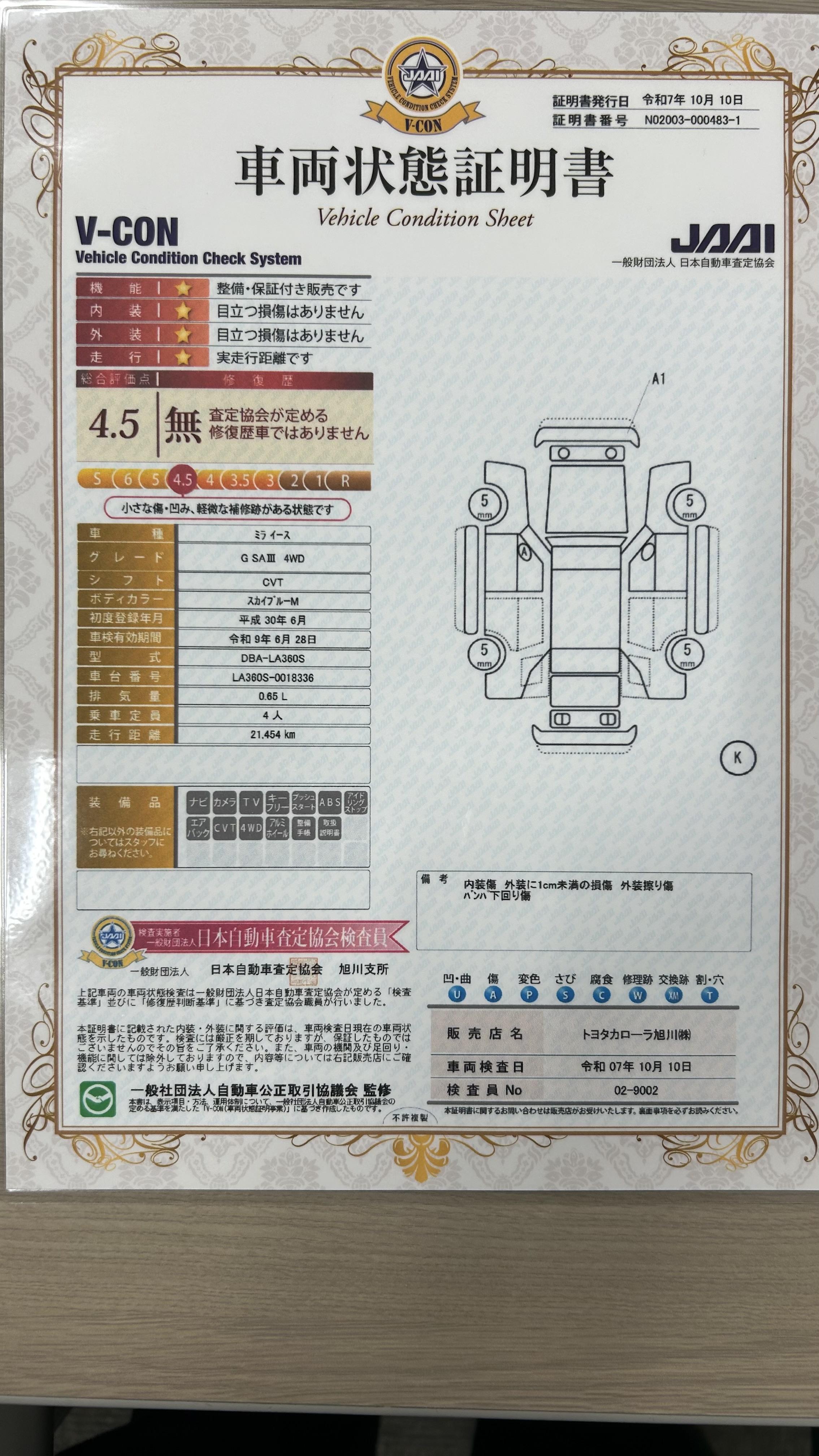 車両保証(ミライース G SAIII:トヨタカローラ旭川(株)西神楽店)