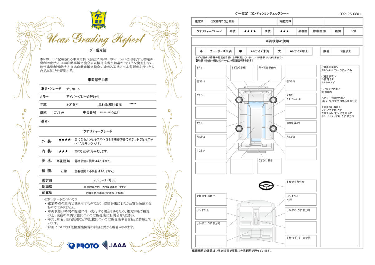 | 車両状態評価書 | ※クリックすると開きます![]() |