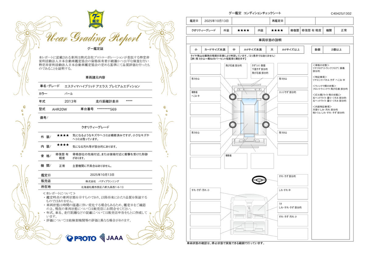 車両状態評価書 | ※クリックすると開きます![]() |