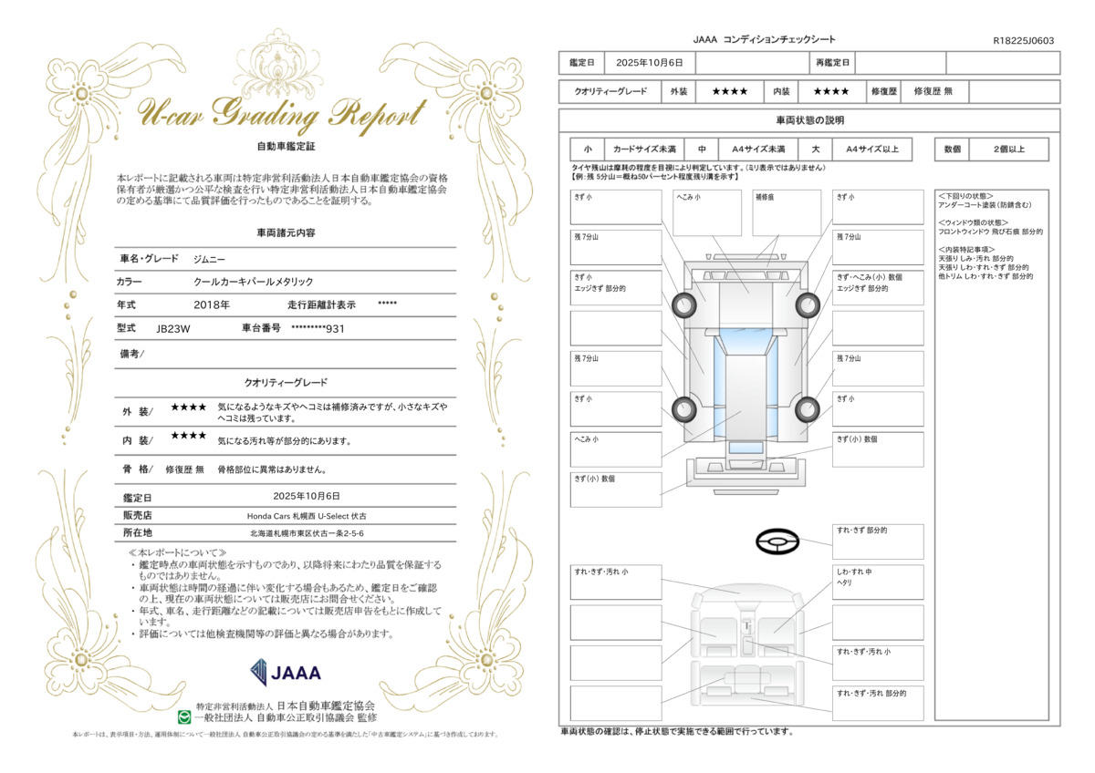 | 車両状態評価書 | ※クリックすると開きます![]() |