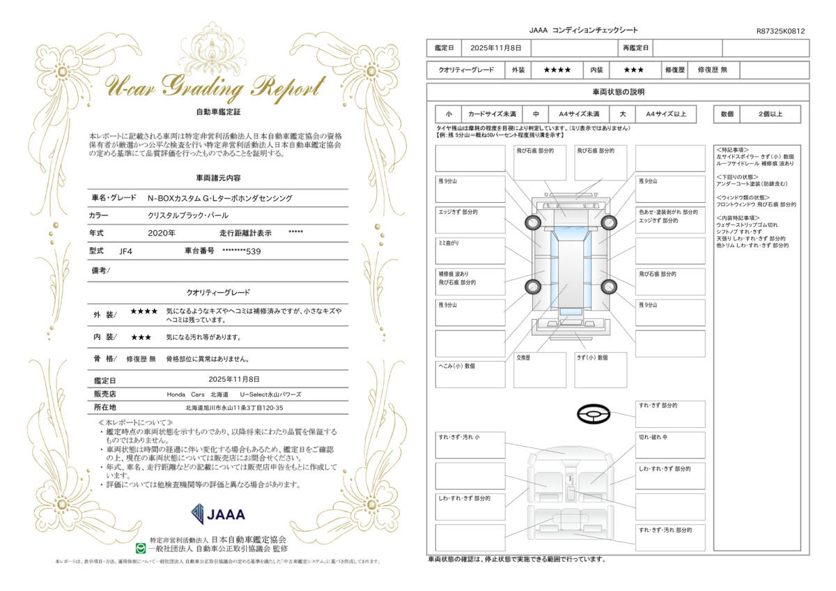 | 車両状態評価書 | ※クリックすると開きます![]() |