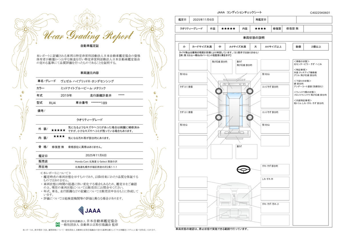 車両保証(ヴェゼル ハイブリッドX・ホンダセンシング:Honda Cars 北海道 U-Select西宮の沢)