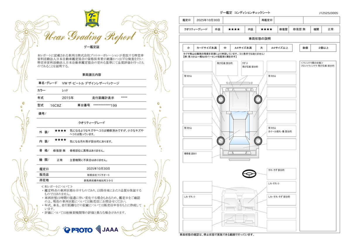 車両状態(ザ・ビートル デザインレザーパッケージ)
