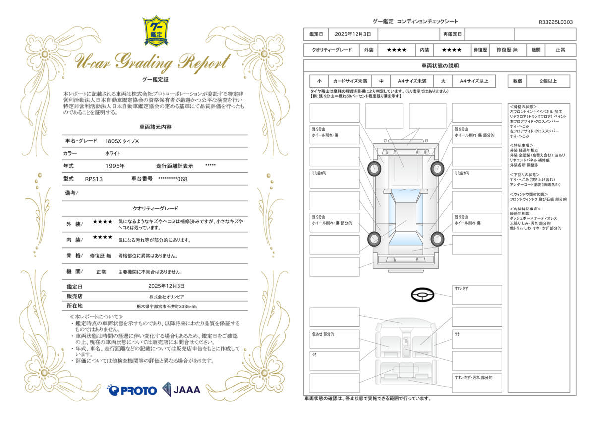 | 車両状態評価書 | ※クリックすると開きます![]() |