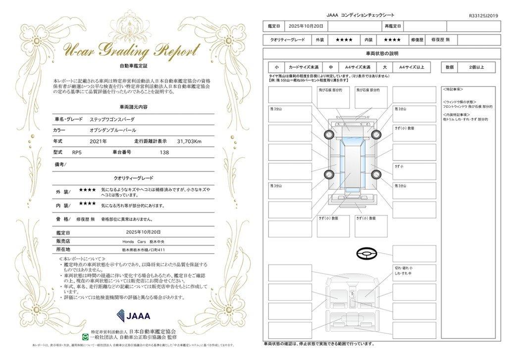 | 車両状態評価書 | ※クリックすると開きます![]() |