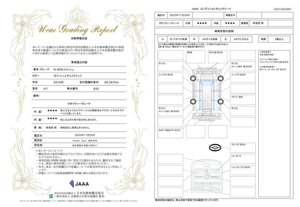 車両保証(N-BOXスラッシュ X:Honda Cars 栃木中央 U-Select小山)