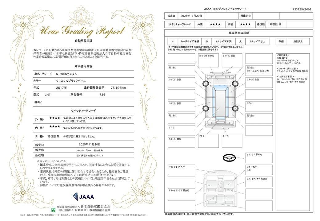 車両保証(N-WGNカスタム G・ターボパッケージ:Honda Cars 栃木中央 U-Select小山)