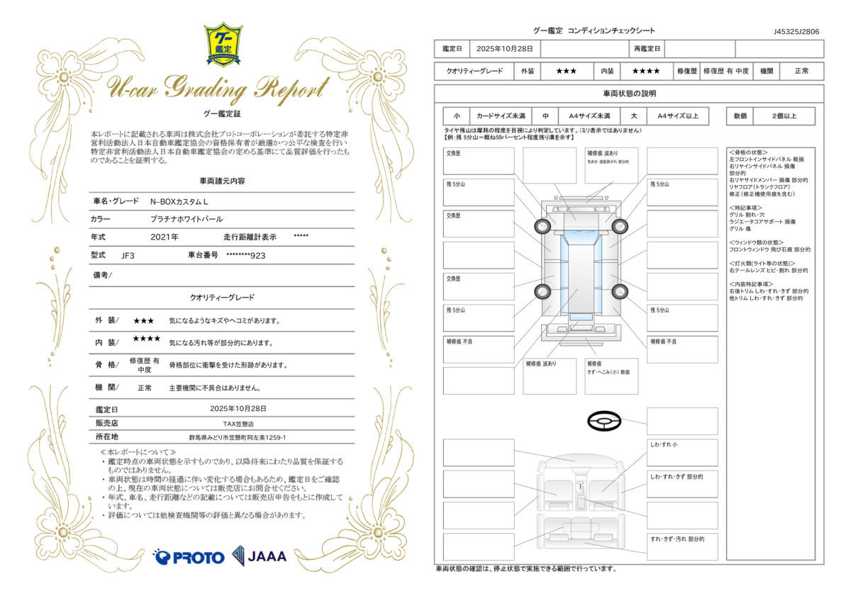 | 車両状態評価書 | ※クリックすると開きます![]() |