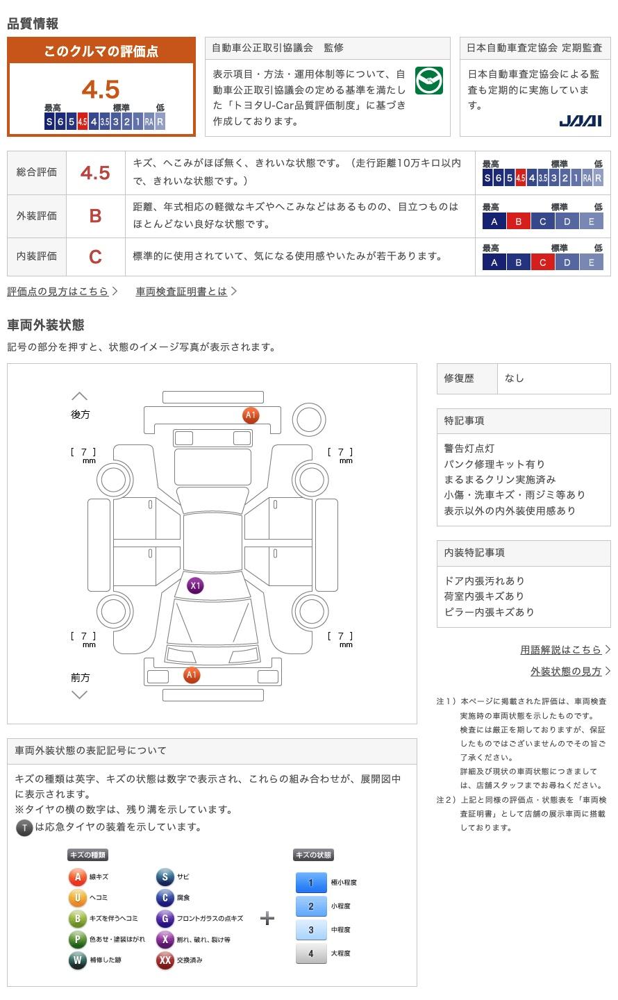 状態を確認する| 修復歴 | 無 | 登録済未使用車 | × |