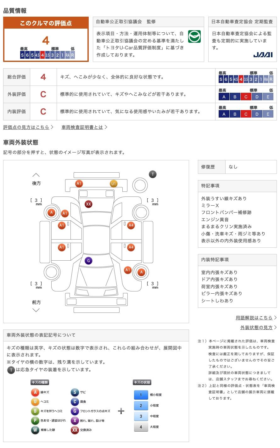 状態を確認する| 修復歴 | 無 | 登録済未使用車 | × |