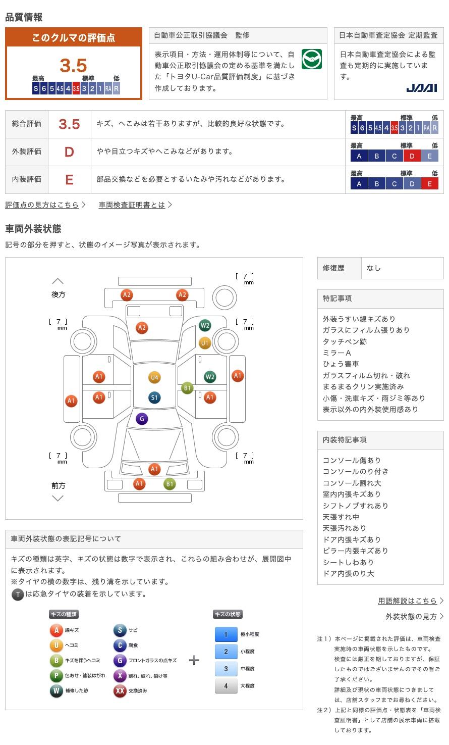 | 機関評価 | - | 修復歴 | 無 |