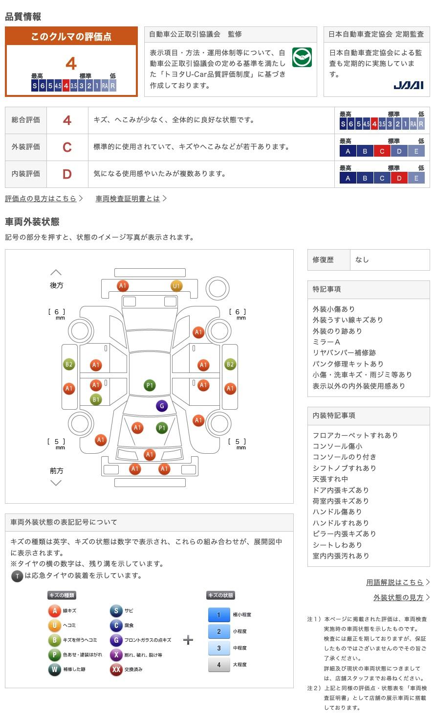 | 機関評価 | - | 修復歴 | 無 |