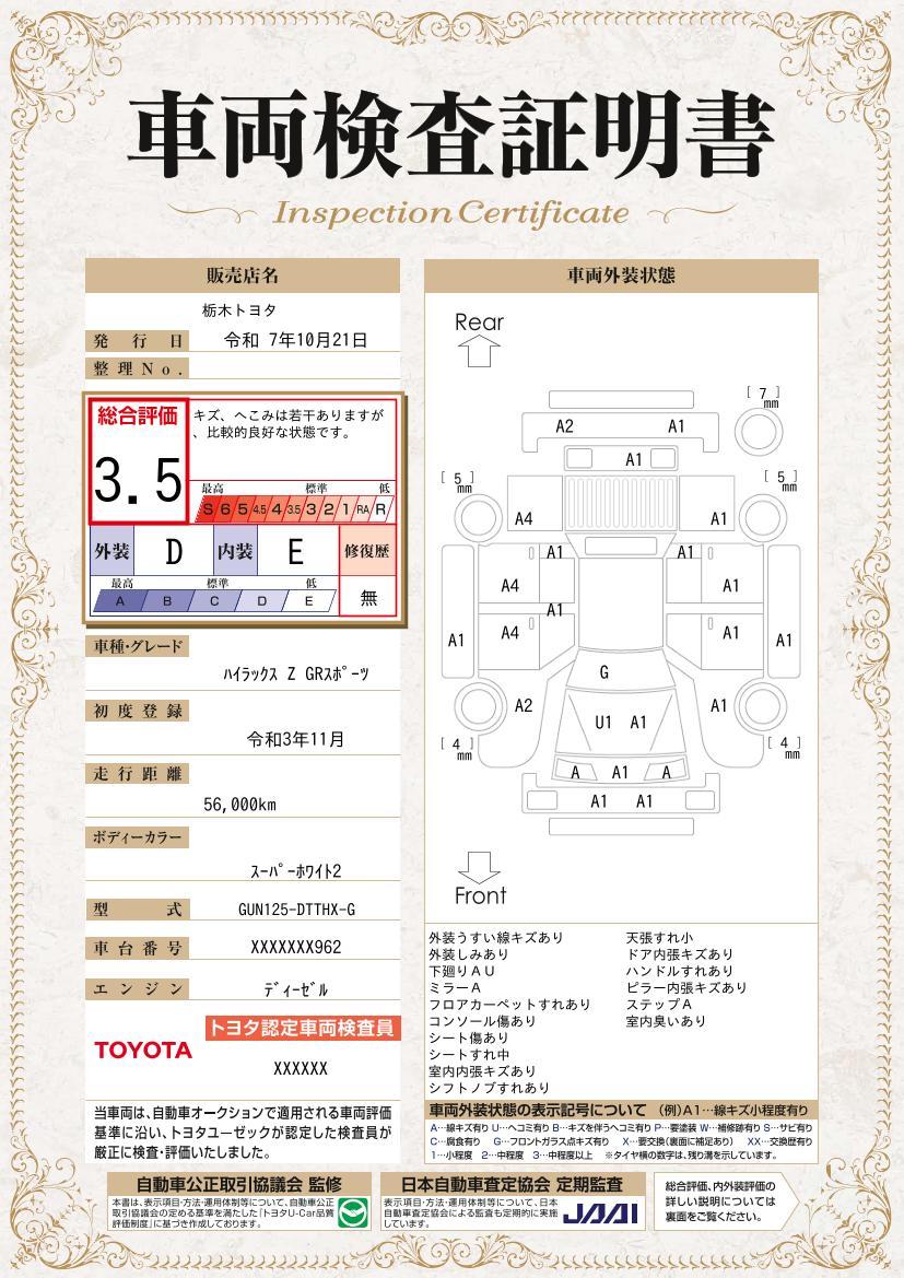 車両保証(ハイラックス Z GRスポーツ:栃木トヨタ自動車(株)U-Carインターパーク店)