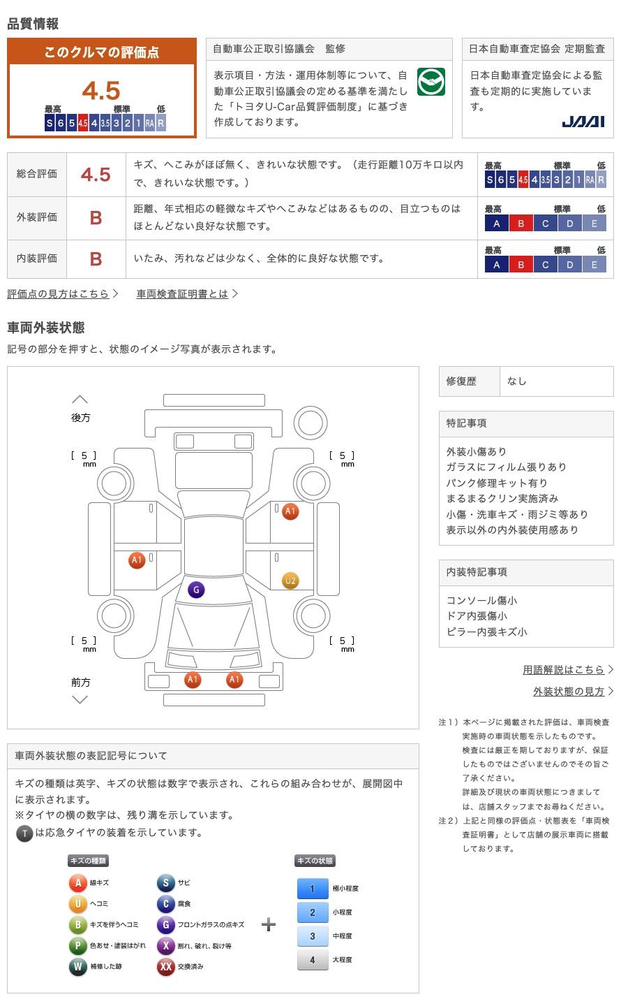状態を確認する| 修復歴 | 無 | 登録済未使用車 | × |