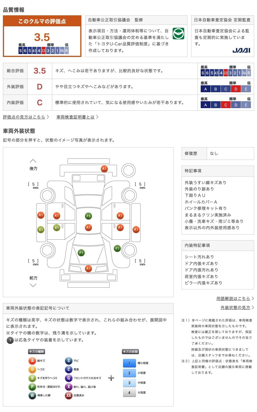 状態を確認する| 修復歴 | 無 | 登録済未使用車 | × |