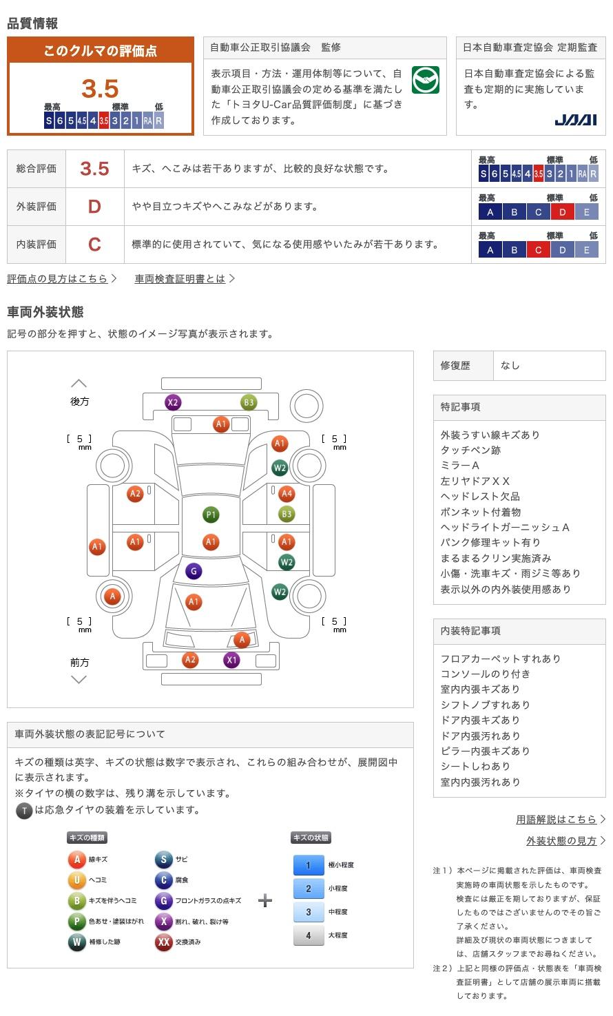 状態を確認する| 修復歴 | 無 | 登録済未使用車 | × |