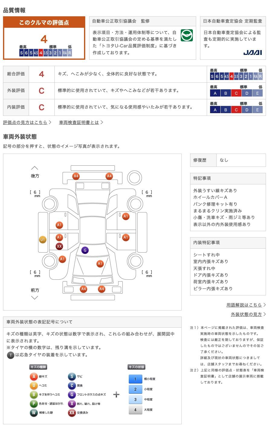状態を確認する| 修復歴 | 無 | 登録済未使用車 | × |