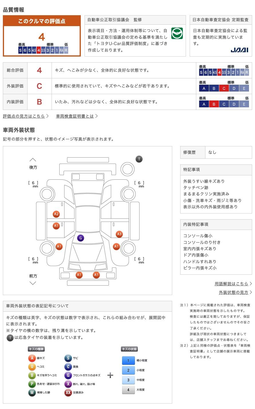 状態を確認する| 修復歴 | 無 | 登録済未使用車 | × |