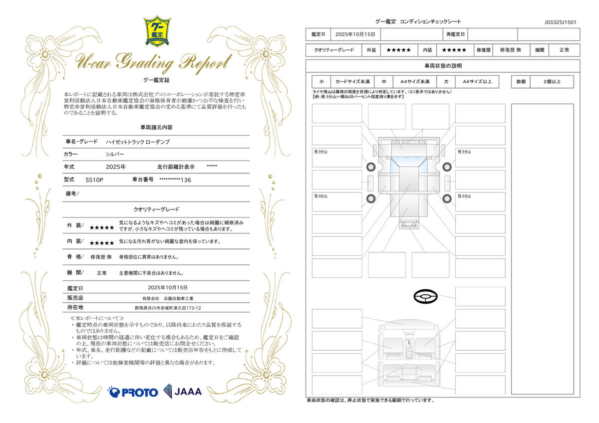 | 車両状態評価書 | ※クリックすると開きます![]() |