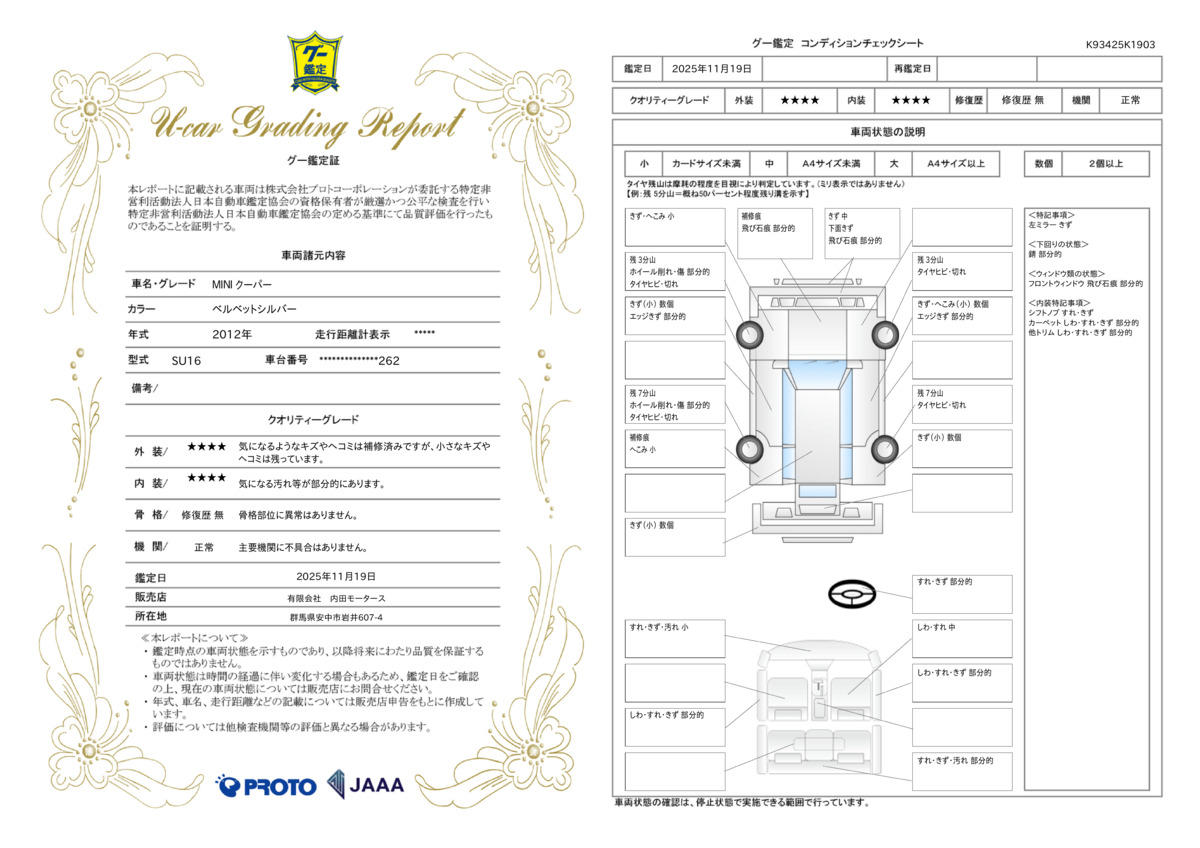 | 車両状態評価書 | ※クリックすると開きます![]() |