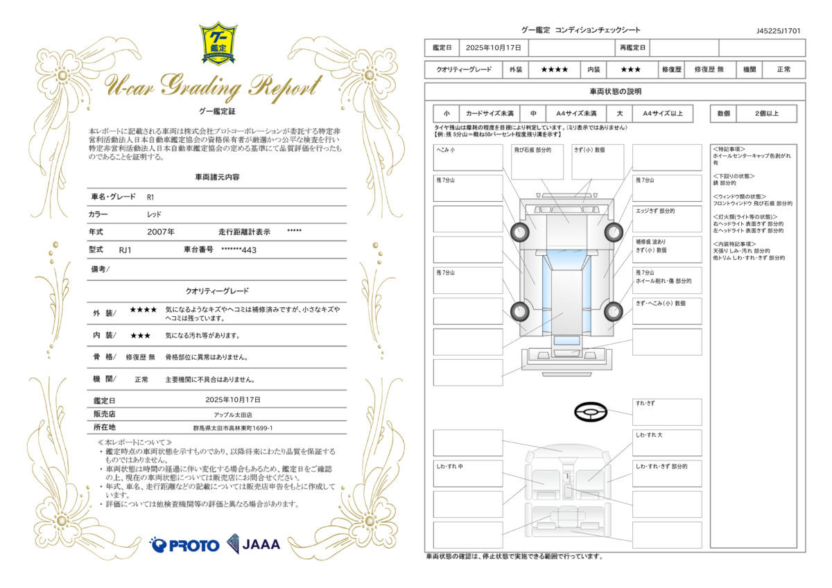 | 車両状態評価書 | ※クリックすると開きます![]() |