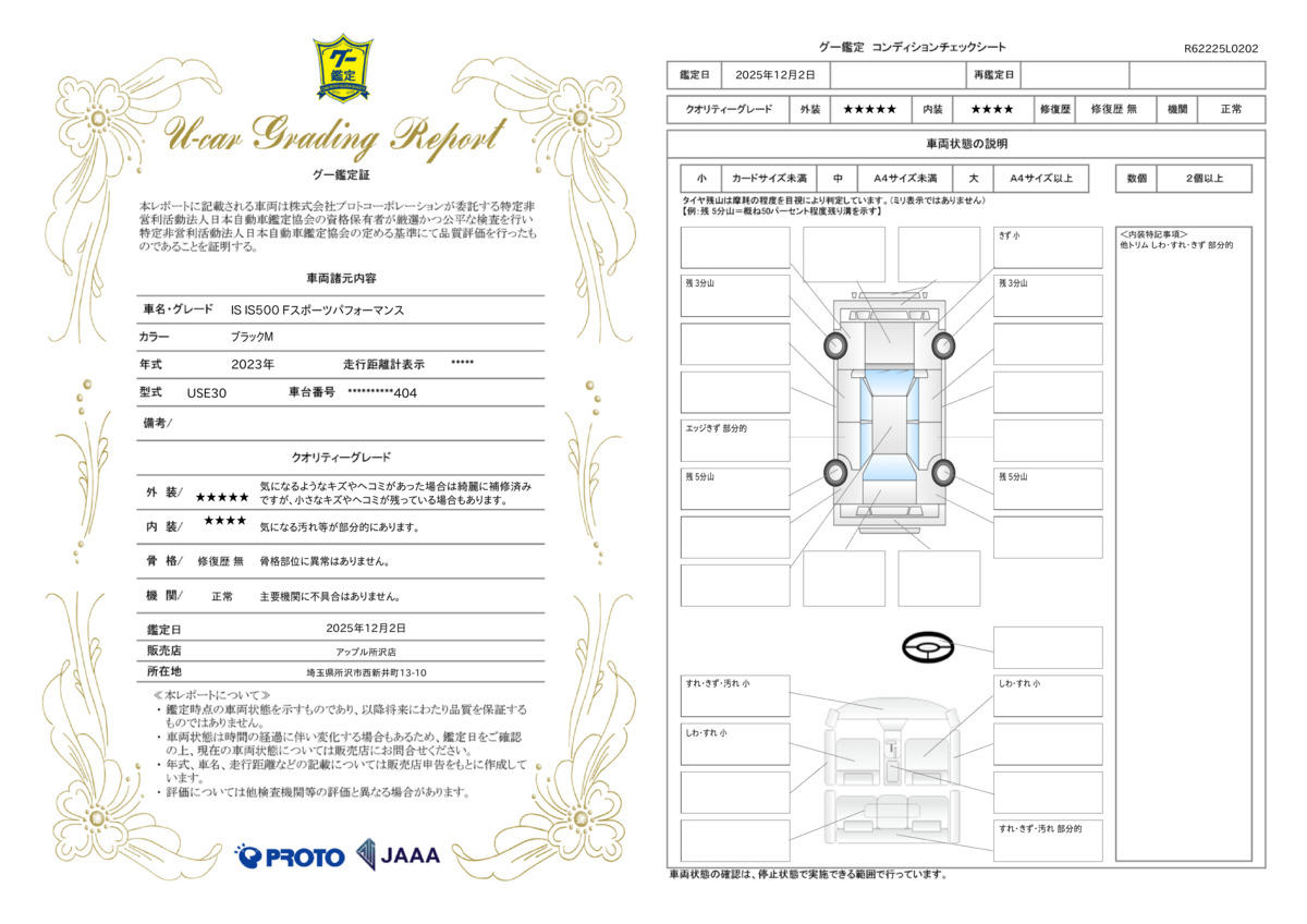 車両保証(IS IS500 Fスポーツパフォーマンス:アップル所沢店)