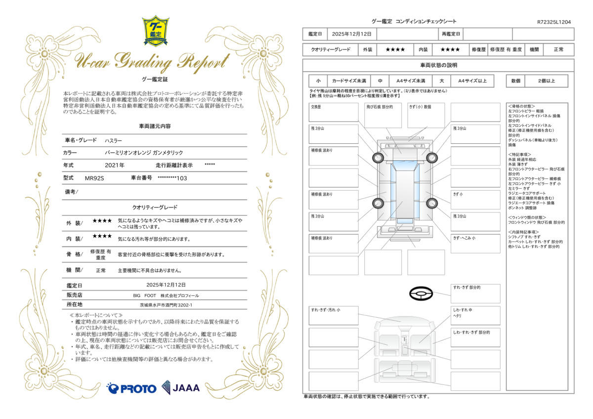 | 車両状態評価書 | ※クリックすると開きます![]() |