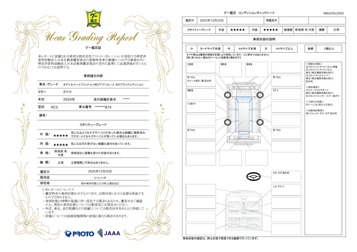 | 車両状態評価書 | ※クリックすると開きます![]() |