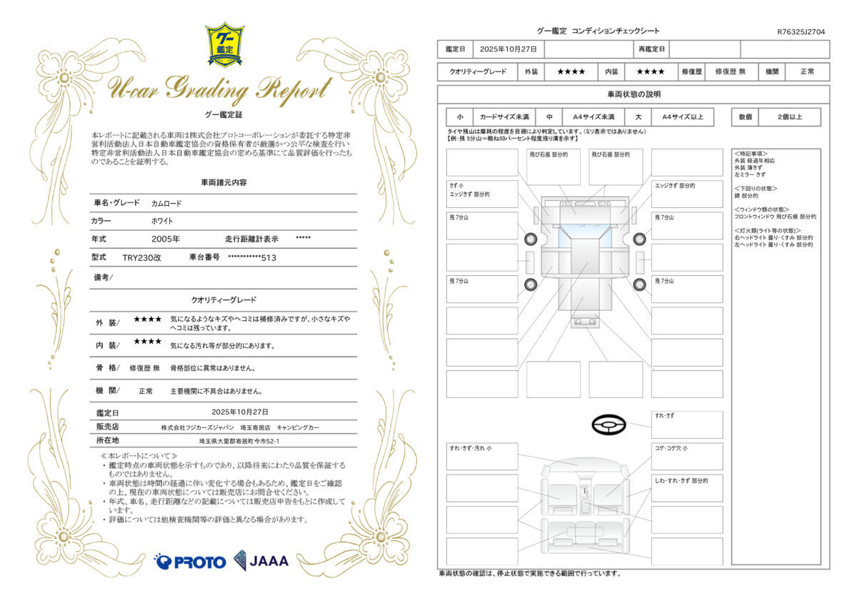 | 車両状態評価書 | ※クリックすると開きます![]() |