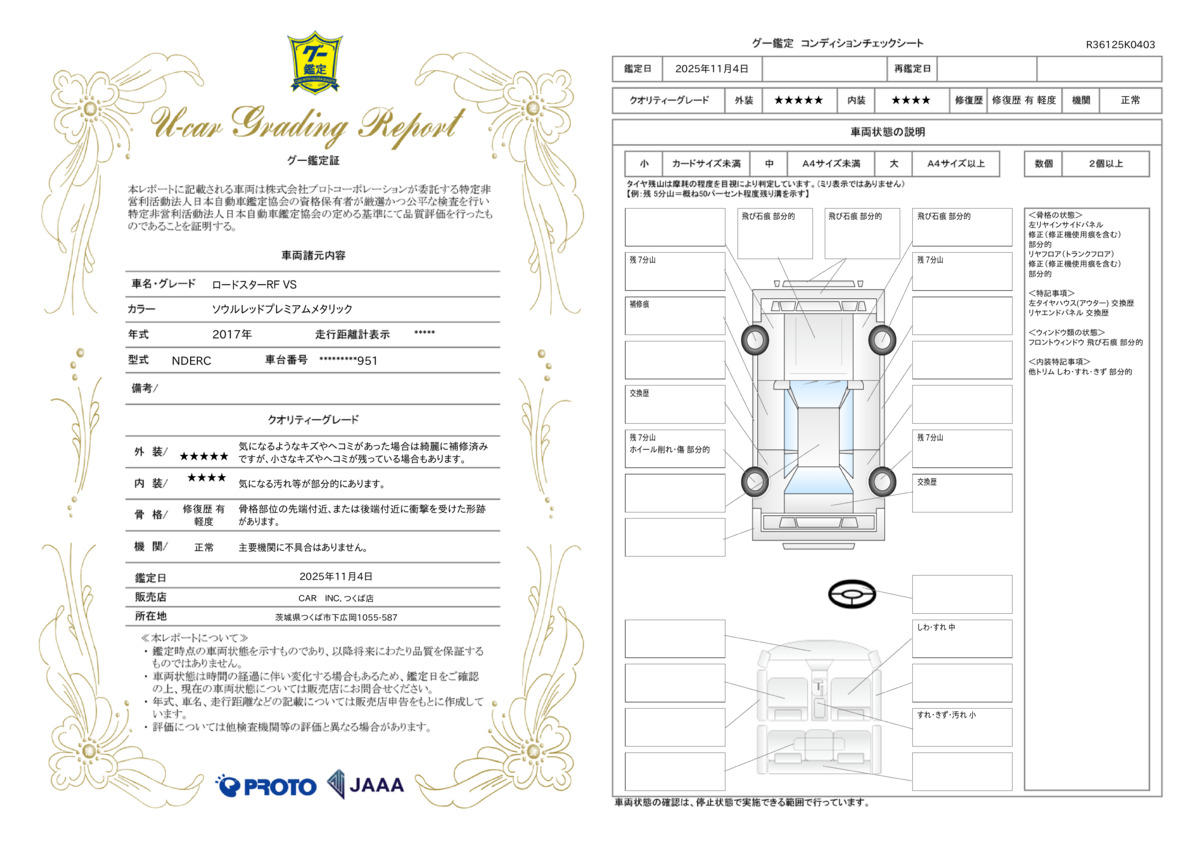 | 車両状態評価書 | ※クリックすると開きます![]() |