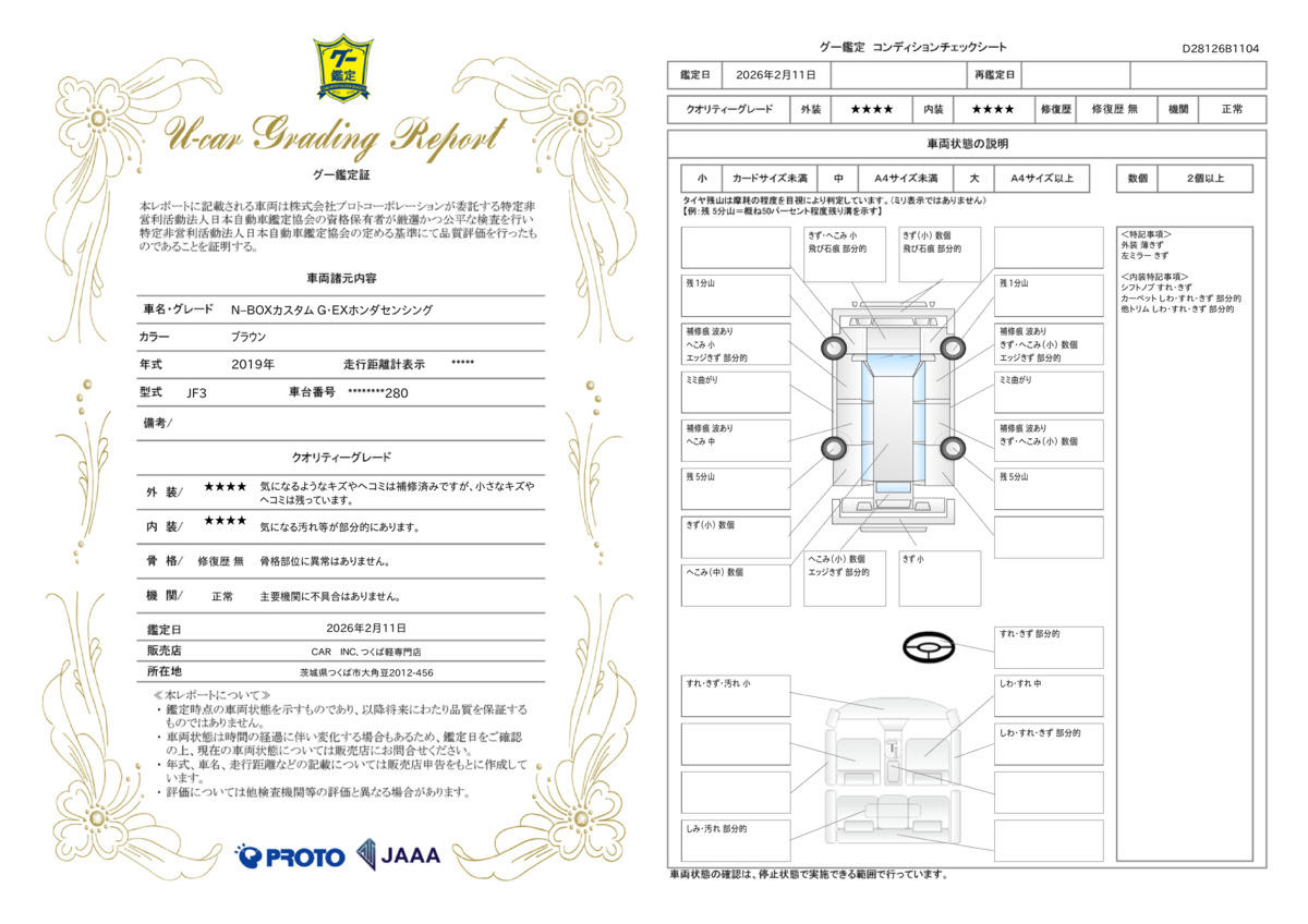 | 車両状態評価書 | ※クリックすると開きます![]() |