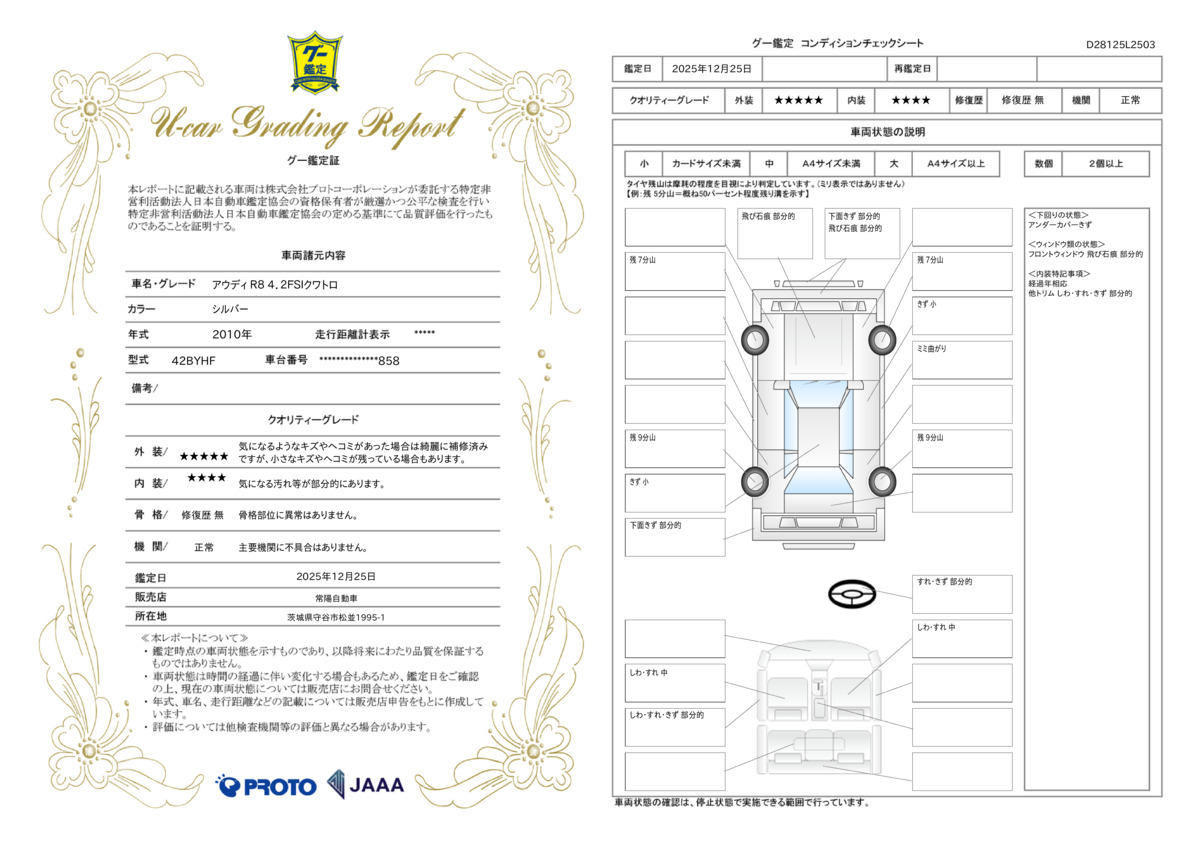 | 車両状態評価書 | ※クリックすると開きます![]() |