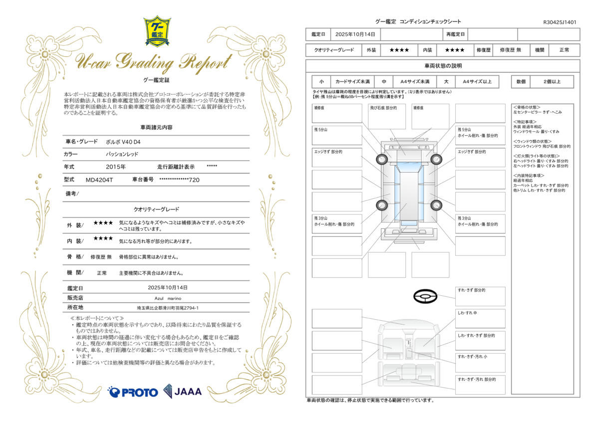 | 車両状態評価書 | ※クリックすると開きます![]() |