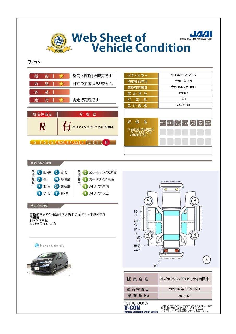 | 車両状態評価書 | ※クリックすると開きます![]() |