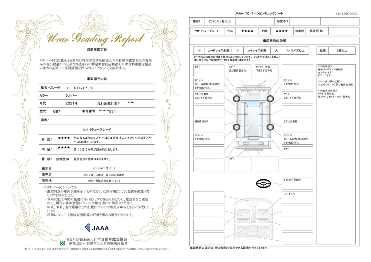 車両保証(フリード+ハイブリッド ハイブリッドG・ホンダセンシング:ホンダカーズ横浜 U-Select湘南台)