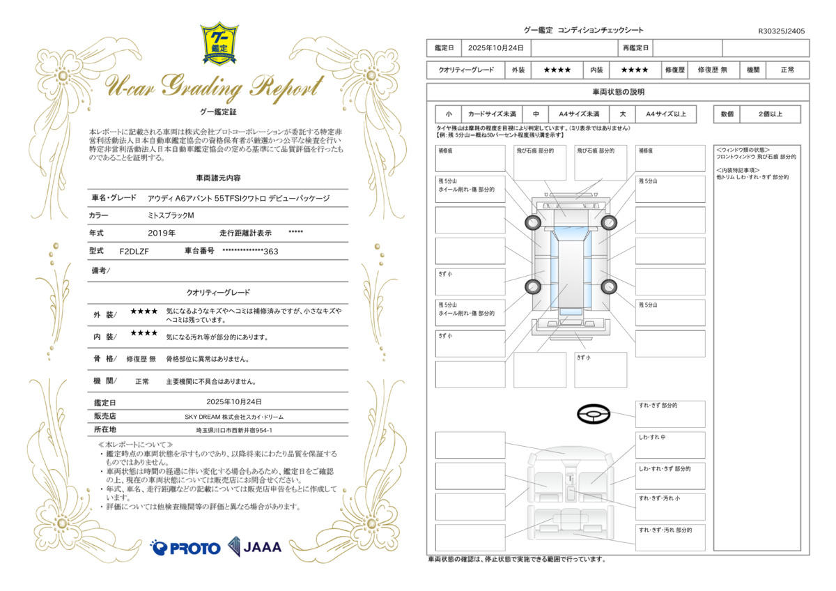 車両状態(A6アバント 55TFSIクワトロ デビューパッケージ)